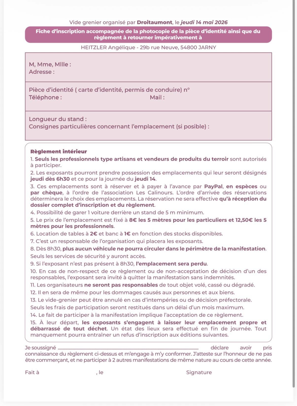 ASSOCIATION – Vide grenier des Calinours